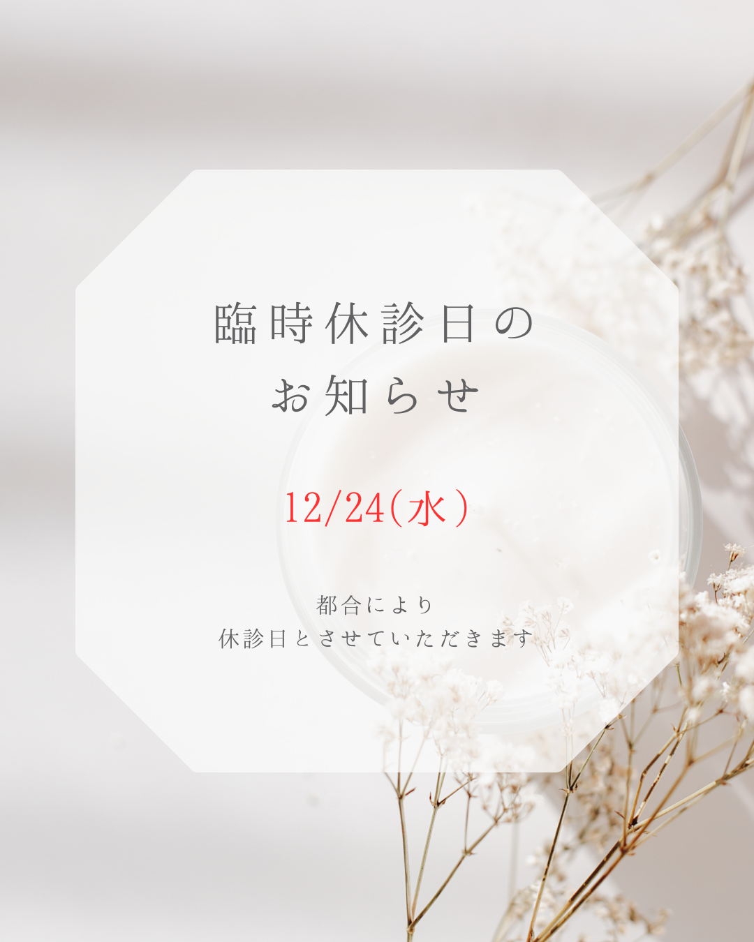 12/24(水)は第4水曜日ではありますが 都合により休診させていただきます