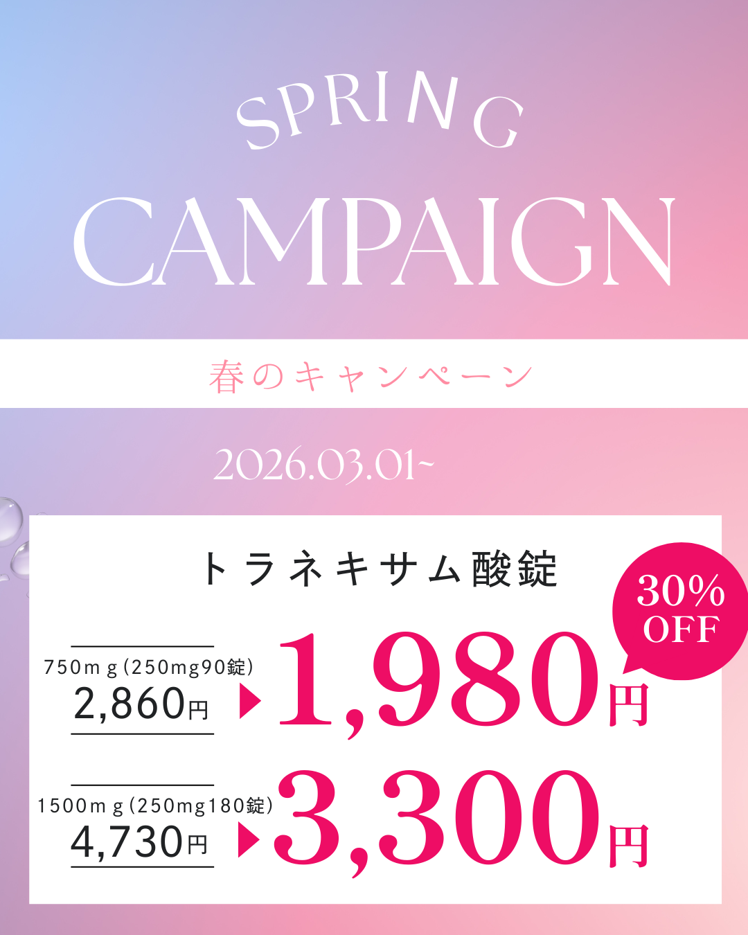 「春のキャンペーン」としてシミ治療目的に内服する「トラネキサム酸」をご用意しました
